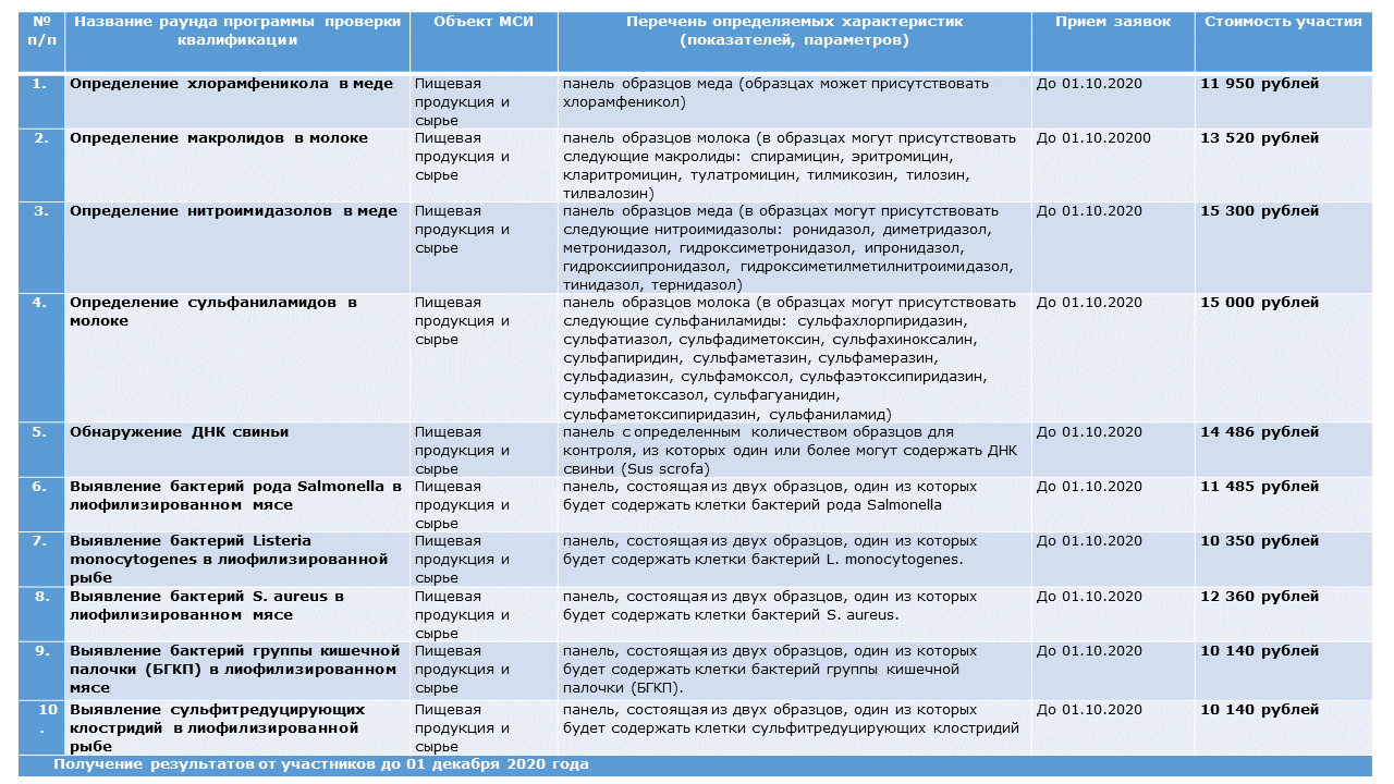 Итоговая сумма рассчитывается исходя из стоимости образцов для проверки квалификации, затрат на организацию проведения МСИ, обработку результатов испытаний, стоимости материалов и прочих расходов.